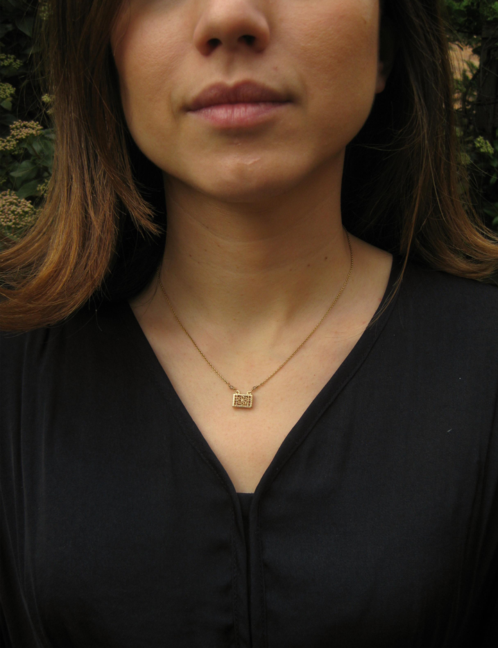 Collar realizado en laminado de oro de 14k y detalles en obsidiana.